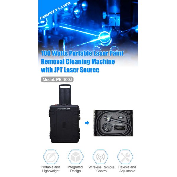 Perfect Laser newly designed laser derusting machine combines light weight, convenient operation, high cleaning efficiency, non-contact and pollution-free. Fast and concentrated laser pulses, high-power impact, evaporate surface residues. Used for rust removal of cast iron, carbon steel, stainless steel, oil cleaning of mold gears, aluminum plate, stainless steel. The oxide surface of the paint is smooth and does not damage the base material.